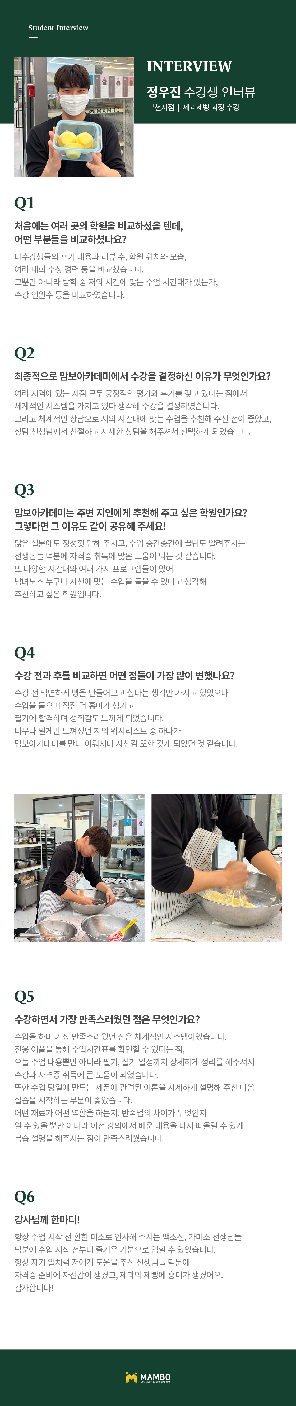 교육의 기반을 달리하여 학생의 기회를 잡아주며 직원의 기강이 태만하지 않은 맘보바리스타제과제빵학원